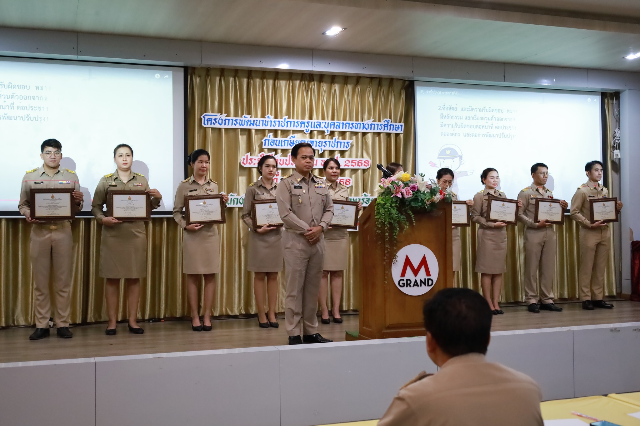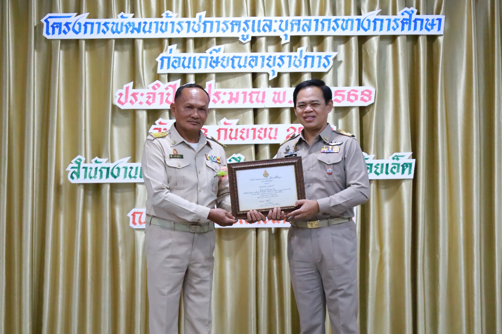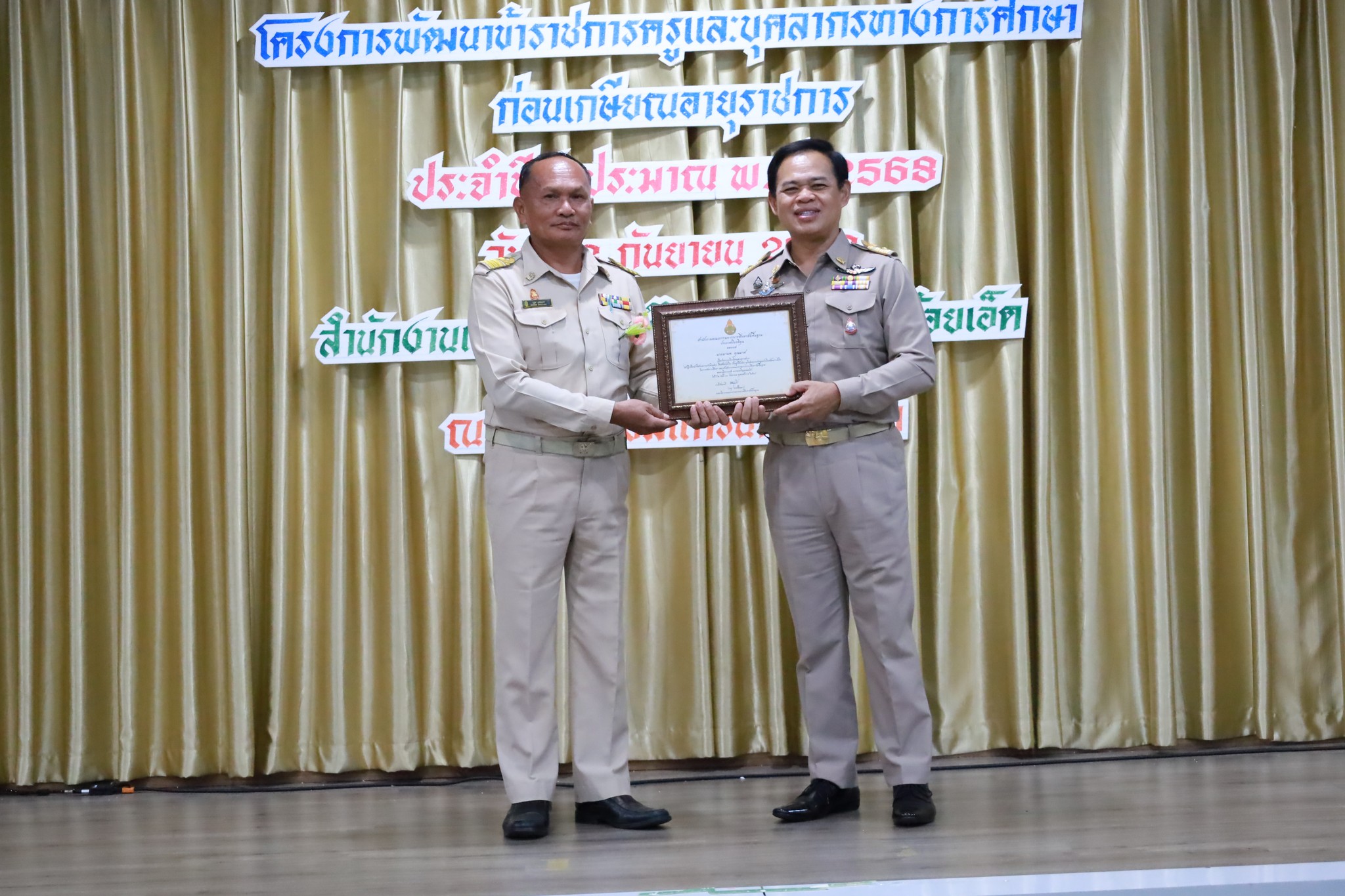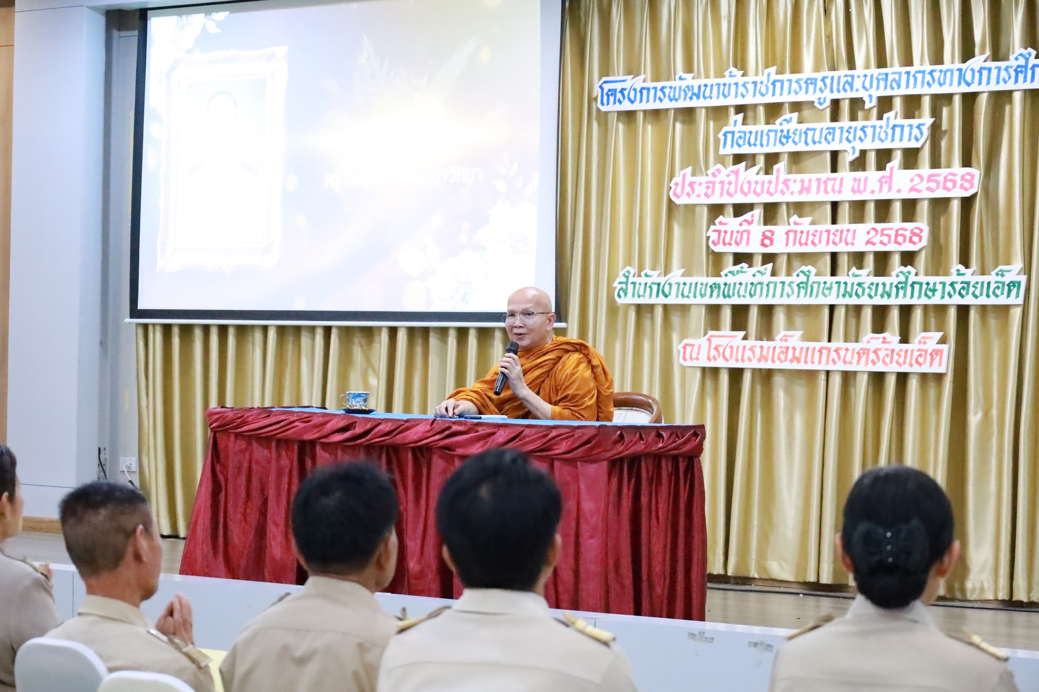 วันจันทร์ที่ ๘ กันยายน ๒๕๖๘ เวลา ๐๘.๐๐ น. นายวิสุทธิ์ สุดหลักทอง ผู้อำนวยการโรงเรียนทรายทองวิทยา พร้อมด้วย นางสาวอัจฉรา นันเจริญ นายปฐม จงกลาง ครูผู้เกษียณอายุราชการในปีงบประมาณ พ.ศ. ๒๕๖๘ และคณะครู ได้เข้าร่วม โครงการพัฒนาข้าราชการครูและบุคลากรทางการศึกษาก่อนเกษียณอายุราชการ ประจำปีงบประมาณ พ.ศ. ๒๕๖๘ ณ โรงแรมเอ็มแกรนด์ร้อยเอ็ด จ.ร้อยเอ็ด การอบรมในครั้งนี้จัดขึ้นเพื่อเตรียมความพร้อมและให้ความรู้แก่ข้าราชการครูและบุคลากรทางการศึกษาที่กำลังจะเกษียณ โดยได้รับเกียรติจาก ดร.กนก ยนต์ชัย ผู้อำนวยการสำนักงานเขตพื้นที่การศึกษามัธยมศึกษาร้อยเอ็ด เป็นประธานในพิธี