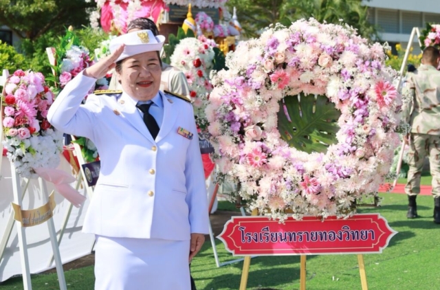 วันพฤหัสบดีที่ ๒๓ ตุลาคม ๒๕๖๘ เวลา ๐๘.๓๐ น. นายวิสุทธิ์ สุดหลักทอง ผู้อำนวยการโรงเรียนทรายทองวิทยา พร้อมด้วยรองผู้อำนวยการ นางสาวอัจฉรา นันเจริญ และนายอินทศักดิ์ เสนาใน นำคณะครูและบุคลากรทางการศึกษา เข้าร่วมกิจกรรมน้อมรำลึกในพระมหากรุณาธิคุณ เนื่องในวันคล้ายวันสวรรคต พระบาทสมเด็จพระจุลจอมเกล้าเจ้าอยู่หัว (รัชกาลที่ ๕)